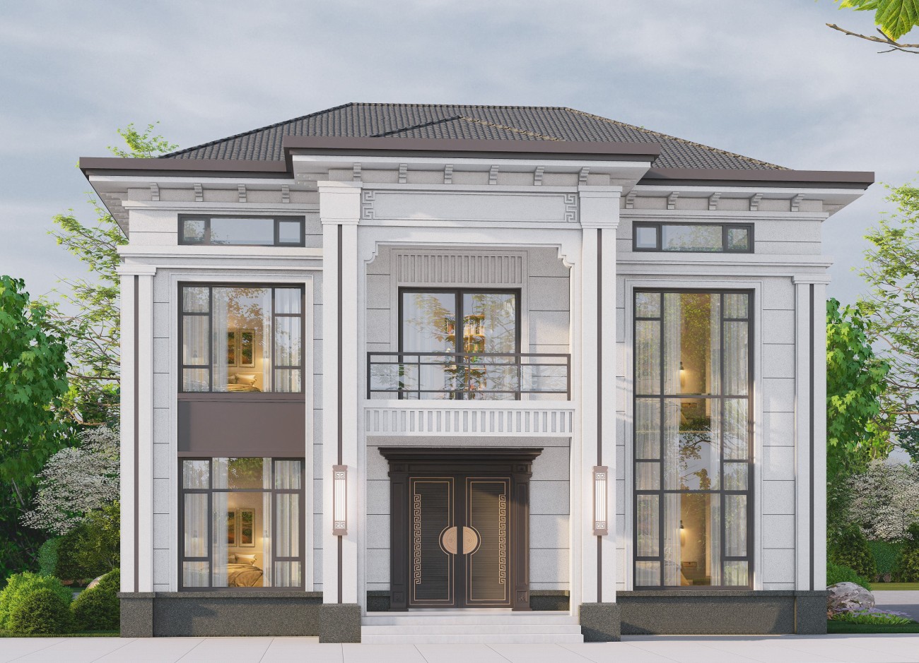 德格12 新中式两层半(12.8x13.06米)-【易设计】